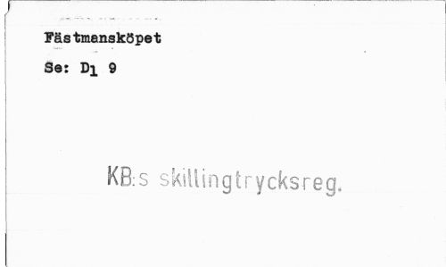 //// / //// f - , ¦ „ ! Fästmansköpet //// Se: Di 9 //// KB:S skillingtrycksreg. ////