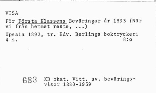 //// VISA //// Pör Första Klassens Beväringar år 1893 (När vi från hemmet reste, ...) //// Upsala 1893, tr. Edv. Berlings boktryckeri 4 s. 8:o //// KB okat. Vitt. sv. bevärings- //// visor 1880-1939 ////