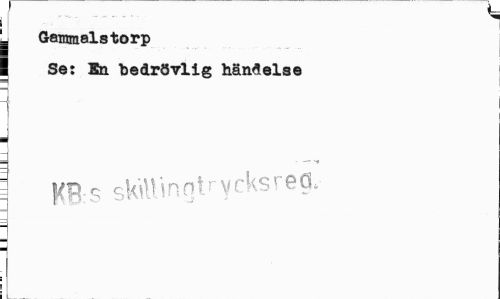 //// f ... % //// j Gammalstorp //// [ Se: Än bedrövlig händelse //// _ - —- //// \ yB s skWlingtrycksreg.- ////