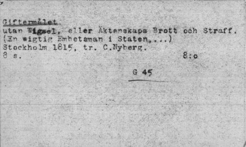//// Vta^^U^t Akt^skapa Brott och Straff, //// {^n Kip-ti" Emt>et»man i Staten, ...i étockholm 1815, tr. C.Nybers?. 8 s. 8-° //// G 45 ////