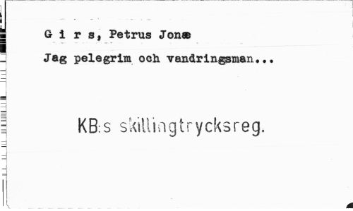 //// Gr i r s, Petrus Jon® //// j Jag pelegrim och. vandringsman... //// Ej //// I i //// - KB:S skilliogtrycksreg. //// A ////