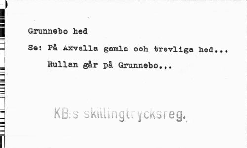 //// I //// i //// j Grunnebo hed //// Se: På Axvalla gamla och trevliga hed... Rullan går på Grunnebo... //// 1 //// i //// Ej //// i KB:s skillingtrycksreg, //// r ////