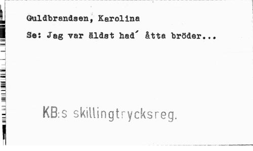 //// I //// I Guldbrandsen, Karolina //// I Se: Jag var äldst had' åtta bröder... //// a J //// - //// 1 1 //// -i //// | KB:S skillingtrycksreg. //// I ___ ////