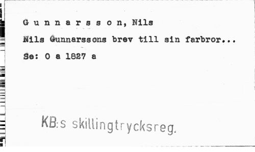 //// | Gunnarsson, Nils : Kils Gunnarssons brev till sin farbror... //// ~j Se: O a 1827 a //// a | //// j KB:s skillingtrycksreg. //// r //// i ___ ////