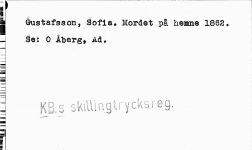 //// i //// I Gustafsson, Sofia, Mordet på hemne 1862. //// ~ Se: 0 Åberg, Ad. //// 1 KB.s sk\Umgtrvcksreg. ¦ ////