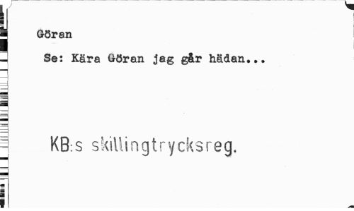 //// j //// I //// | Göran //// 3 Se: Kära Göran jag går hädan... //// i I //// i //// i KB:S skillingtrycksreg. ¦ //// i ////