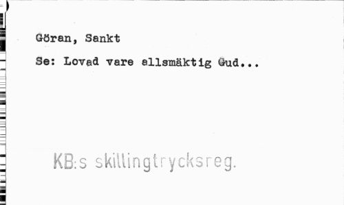 //// i' //// ' Göran, Sankt //// Se: Lovad vare ellsmäktig Gud... //// i KB:S skillingtrycksreg. ////