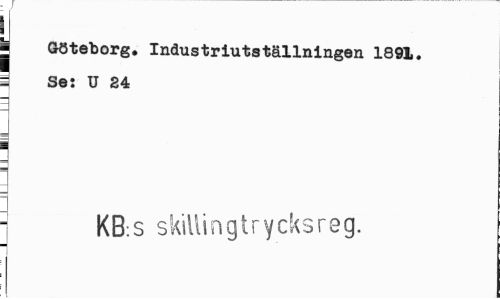 //// - //// j Göteborg. Industriutställningen 1891. 1 Se: U 24 //// • KB.s skillingtrycksreg. ////