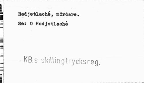 //// 1 //// I //// j Hadjetlaché, mördare. 5 Se: O Hadjetlaohé //// a //// ] KB s skillingtrycksreg. //// il I --- ////