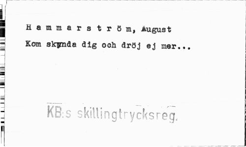 //// I //// Ij //// I I //// y //// \ Hammarström, August j Kom skTjmcla äig och dröj ej mer... //// H g //// | //// i //// i //// j KB:S skillingtrycksreg. //// ¦i //// fl ////