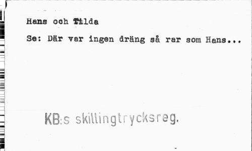 //// y Hans och Tilda //// ¦ Se: Där var ingen dräng så rar som Hans... //// i //// q //// i //// : KB:S skillingtrycksreg. t ////