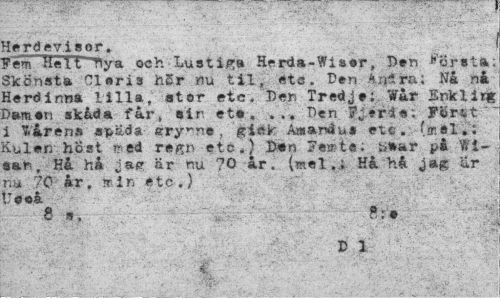 //// Hejrdevisor. //// Fem~!IeTF""T!ya och Lustiga Herda-Wisar, Bars "örata; Slcönsta 'Claris hSr nu til, ate. Ben årtfra; Nå nå Kerdinna lilla, ator etc, Ber Tredje; Wår Snklirg Dam an skåda får» aln eta. ... Den Fjeria: For', t i bårens späda, eryrie, gick Aatanäua ett. (mal.; Kulen-ho st. med regn etc.) Dan Se» te; 8*ar på Wi-san, Hå hå jag är nu ?0 år. (mel.; Kå hå jag är nu 70 år. »in etc.) tJeaå : //// ¦ a a, a ra //// B 1 ////