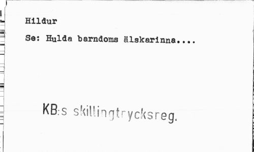 //// J Hildur //// 3 Se: Hulda barndoms älskarinna... //// i //// 3 //// j KB.s skHUngtrycksreg ////