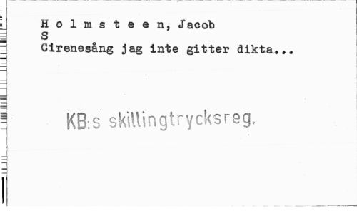 //// Holmsteen, Jacob //// B S //// = Cirenesång jag inte gitter dikta... //// i //// d j //// l KB.s skiUingtrycksreg, ////