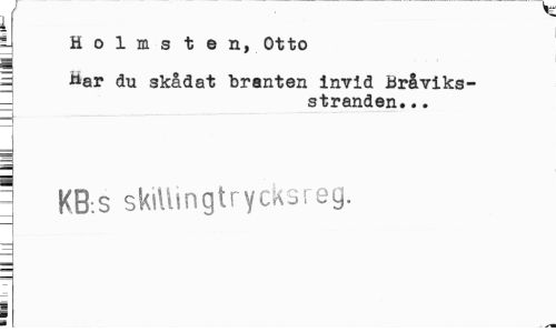 //// L Holmsten, Otto //// | Har du skådat branten invid Bråviks- //// = stranden... //// H //// H KB.s skillingtrycksreg. //// i x- ////