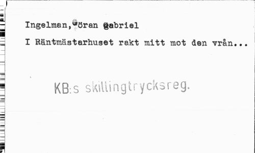 //// - Ingelman^öran gabriel i //// = I Räntmästarhuset rakt mitt mot den vrån... //// I KB:S skillingtrycksreg. i ////