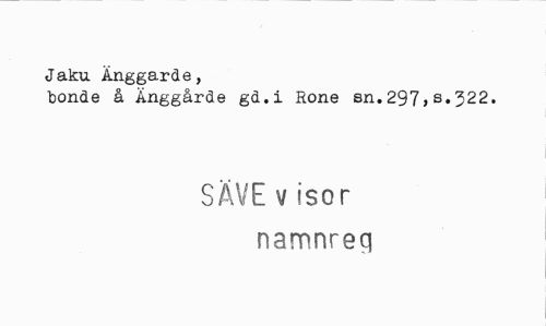 //// Jaku Ånggarde, //// bonde å Änggårde gd.i Rone sn.297,s.^22. //// SÄVE v isor namnreq ////