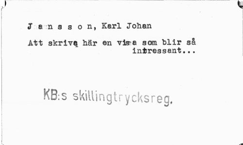 //// J ans s o n, Karl Johan //// Att skriv^ här en vls^a som hlir så //// intressant... //// K8;s skiUingtrycksreg, ////