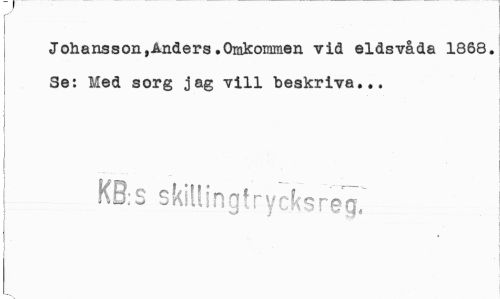 //// Johansson»Anclers .Omkommen vid eldsvåda 1868. Se: Med sorg jag vill beskriva... //// KB;3 skillingtrycksreg, ////