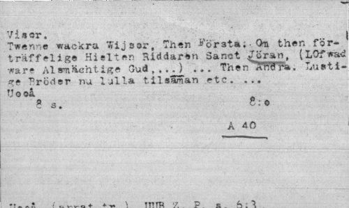 //// Visor» //// ?w«nne wac-kra 'ffijsar, Then Första; - Q® then förträff el i ge Hielten Riddaren 3anat ^öran, (LOfwad vrare Alsmäehtige Gud,...) ___Then 1WH. Lustige Pröder na lulla t.ilsaman etc. ... Uooå //// 8 3. t:o //// A 40 //// - - « * *« —\ ////
