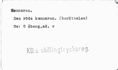 //// Kammaren. Den röda kammaren, (berättelse) Se: O Åberg,Ad. c //// KB:S skillingtrycksreg. //// i ////