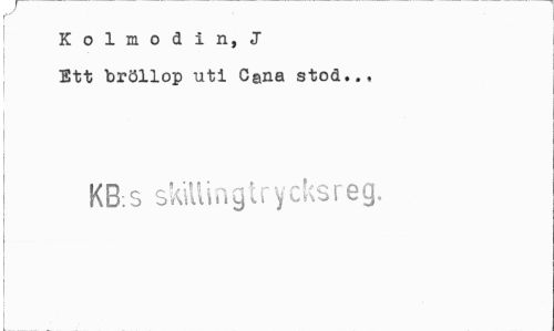 //// Kolmodin, J //// Stt bröllop uti Cana stod.., //// KB-.s s killin gt rycks reg. ////