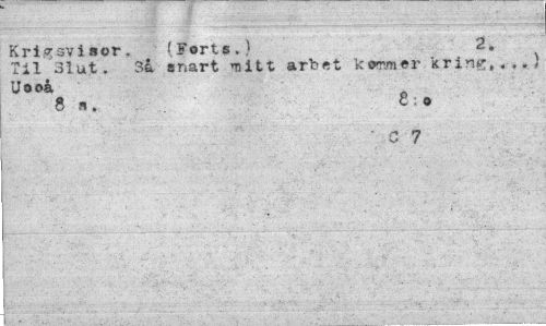 //// Krigsvisor. (Forts.) 2« //// Til 31 ut. 3a snart mitt arbet kommer.kring,* //// 8 //// ' C 7 ////