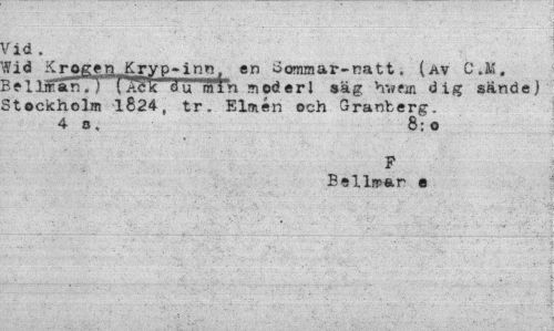 //// fid . //// ffid Krogen Kryp-inn. en Sommar-natt. (av C.M. B e 1 lfffan . y u' "ml n n\ od e r l säg hvrn dig sände) //// Stockholm 1824, tr. Elmén och Granberg. 4 o. 8:o //// F //// Eellfpar e ////