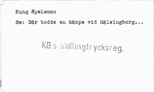 //// Kung Speleman //// Se: Där bodde en kämpe vid Hälsingborg... //// KB:s skillingtrycksreg. ////