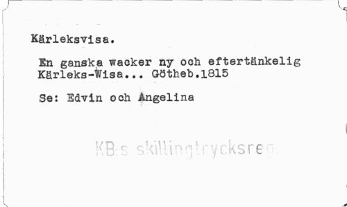 //// Kärleksvisa. //// En ganska wacker ny och eftertänkelig Kärleks-frisa... Götheb.1815 //// Se: Edvin och Ångelina //// | KB:s . as re ////