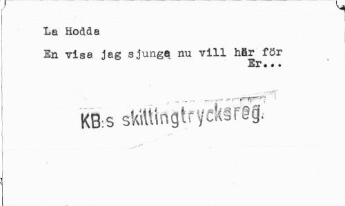 //// \ //// La Hodda //// En visa jag sjunga nu vill hör för //// Er... //// i //// KB s skmingtryck§'r@g; //// ¦ ////