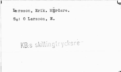 //// t u //// Iersson, Erik. Mgrdare. Se: O Larsson, E. //// KB:s skitting trycks re^" ////