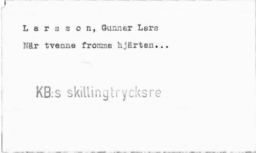 //// Lars s o n, Gunnar Lars När tvenne fromme hjärtan... //// KB:S skillingtrycksre ////