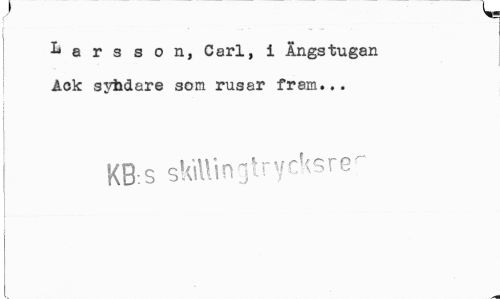 //// v //// Larsson, Carl, i Ängstugan Ack sytodare som rusar fram... //// KB:S skiuingtrydtsre- ////