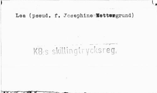//// t ". Lea (pseud. f. Josephine -:Hett«»grund) //// KB:S skillinglrycksreg, ////