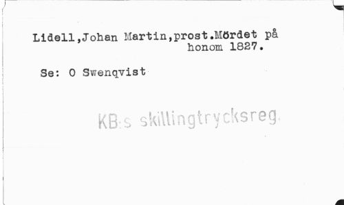 //// v. //// Lidell,Johan Martin,prost.Mördet på //// honom 1827. //// Se: O Swenqvist //// KB-s skillingtrycksreg //// | ////