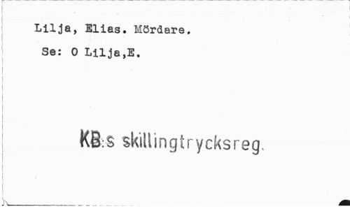 //// Lilja, Elias. Mördare. Se: O Lilja,E. //// | //// KB:S skillingtrycksreg, //// i //// A ////