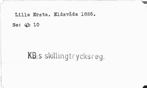 //// Lilla Ersta. Eldsvåda 18S6. Se: <£b 10 //// KB;S skillingtrycksreg. ////