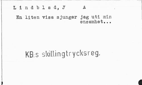 //// Lindblad, J A //// En liten visa sjunger jag uti min //// ensamhet... //// KB:S skillingtrycksreg, //// å ////