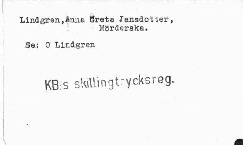 //// Lindgren,Anne Öreta Jansdotter, //// Mörderska. //// Se: 0 Lindgren //// KB:S skiUingtrycksreg. ////