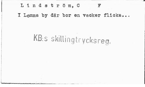 //// Lindström, C F //// I Lomma "by där "bor en vacker flicka... //// | KB.s skillingtrycksreg. //// i ////