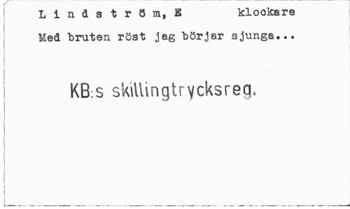 //// Lindström, E klockare //// Med bruten röst jag börjar sjunga... //// KB.s skillingtrycksreg. ////