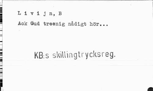 //// 3 i //// I L i v i j n, B 1 Ack Gud treenig nådigt hör... //// | KB:S skillingtrycksreg. //// 3 i ////