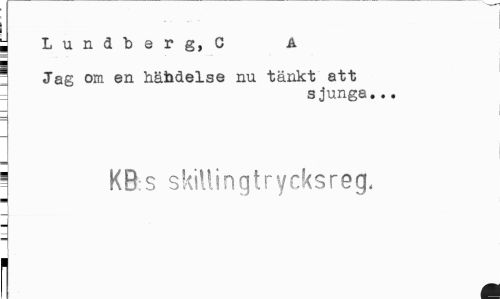 //// J Lundberg, C A //// : Jag om en häbdelse nu tänkt att //// = sjunga... //// = //// " KBs skillingtrycksreg, //// i //// m ////