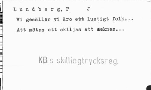 //// Lundberg, P J //// j Yi gesäller vi äro ett lustigt folk... = Att mötas att skiljas att aaknas... //// KB s skillingtrycksreg. //// M ////