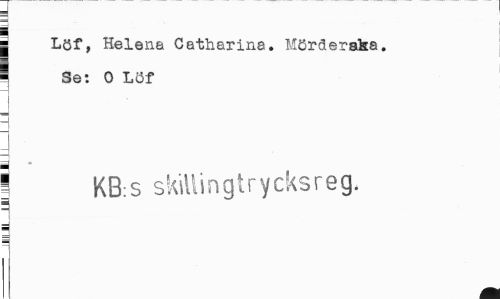 //// g //// a //// ; Löf, Helena Catharina. Mörderake. //// \ Se: O Löf //// j //// J . //// ! KB:S skillingtrycksreg. ////