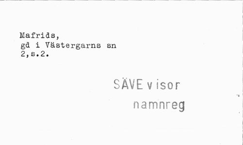 //// Mafrids, //// gd i Västergarns sn 2,s.2. //// SÄVE v isor //// •¦3 //// namnreg ////