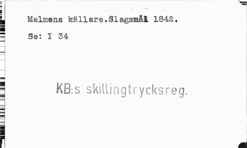 //// I Malmens källare.Slagsmål 1842. | Se: I 34 //// j KB:s skillingtrycksreg. ////