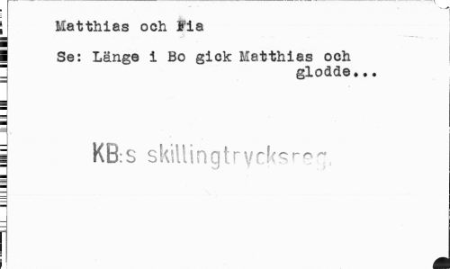 //// Matthias och tia //// i Se: Länge i Bo gick Matthias och " glodde... //// i KB:S skillingtryck^ro- //// m ////