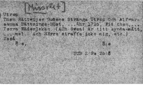 //// Utrop . "¦¦¦.T.v."' //// Then Rättwijsé GvKiéns Stränga Utrop Och Alf^ar-' »ararna Bättrings-Röst, . ..Ahr 1726*, HM - then,...»'. Torra iMerleken. (ACh Sfeai är titt synda -»åt t., /.v*-\Tn«i,; Ach HSrrö 'straffa icke mig, etc,.) Uooå _ .¦ //// 8 s, 8; o //// • ' / 1 , ' . . . //// ' UUB £ Ps 2ö: 8 - //// 1 • 4 " . ¦ c x - - -* //// •."'"'-¦V' ' : ^, • -Vt,. ?'.v- ... ¦ //// • y 1 A , - i - «. \ * - , ; //// C • , - „ ' • //// " i ////